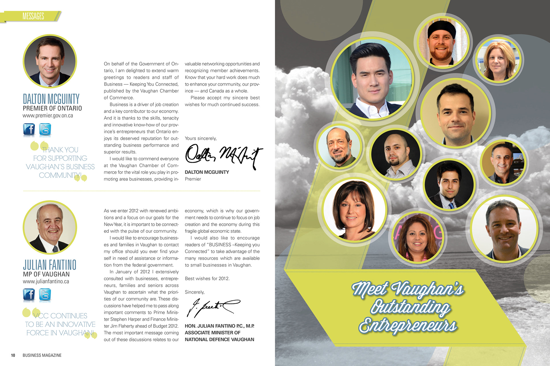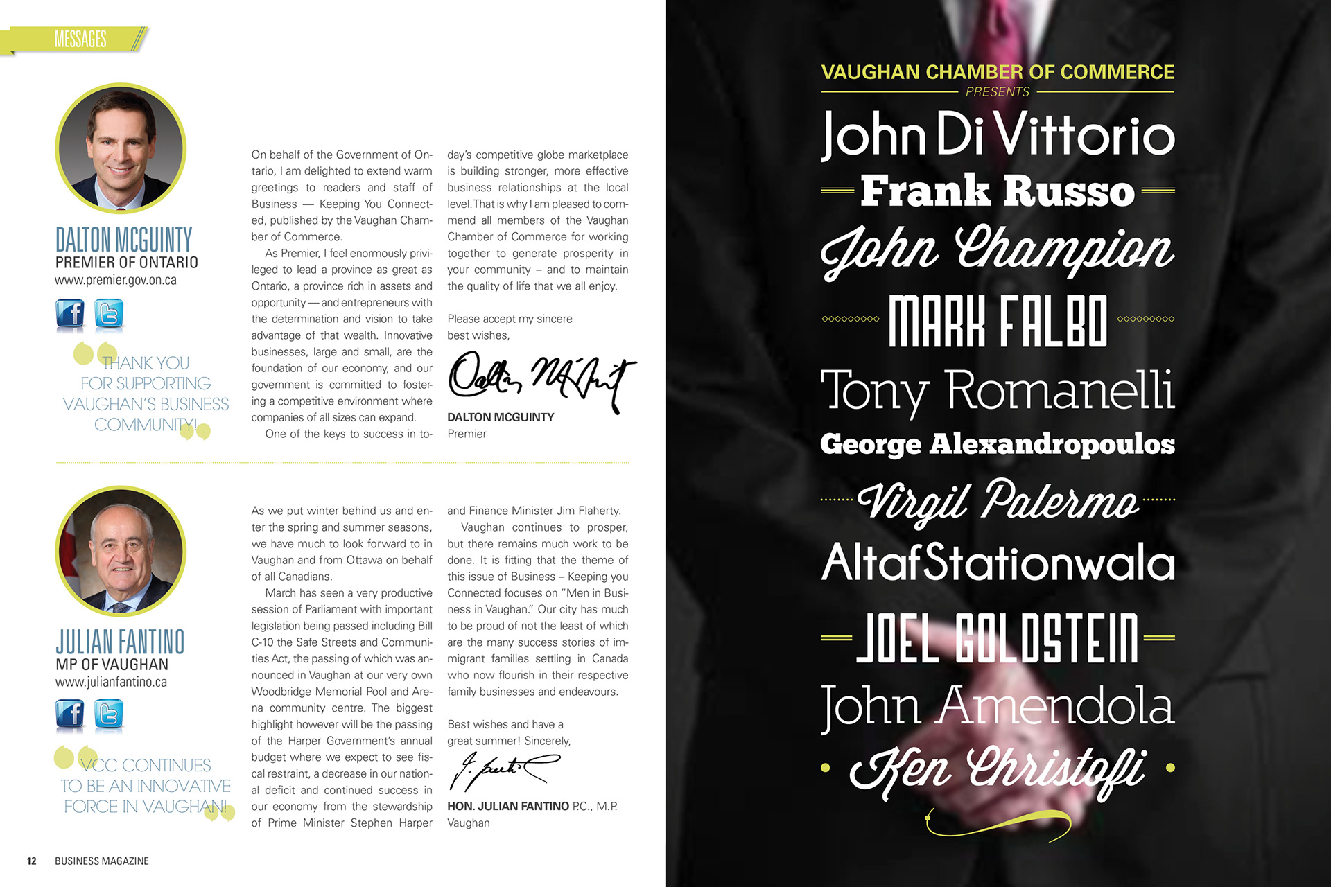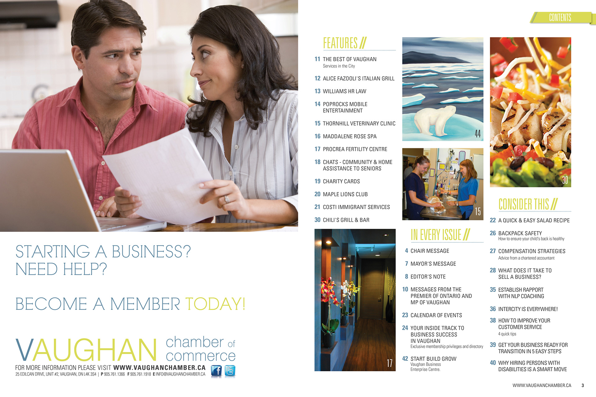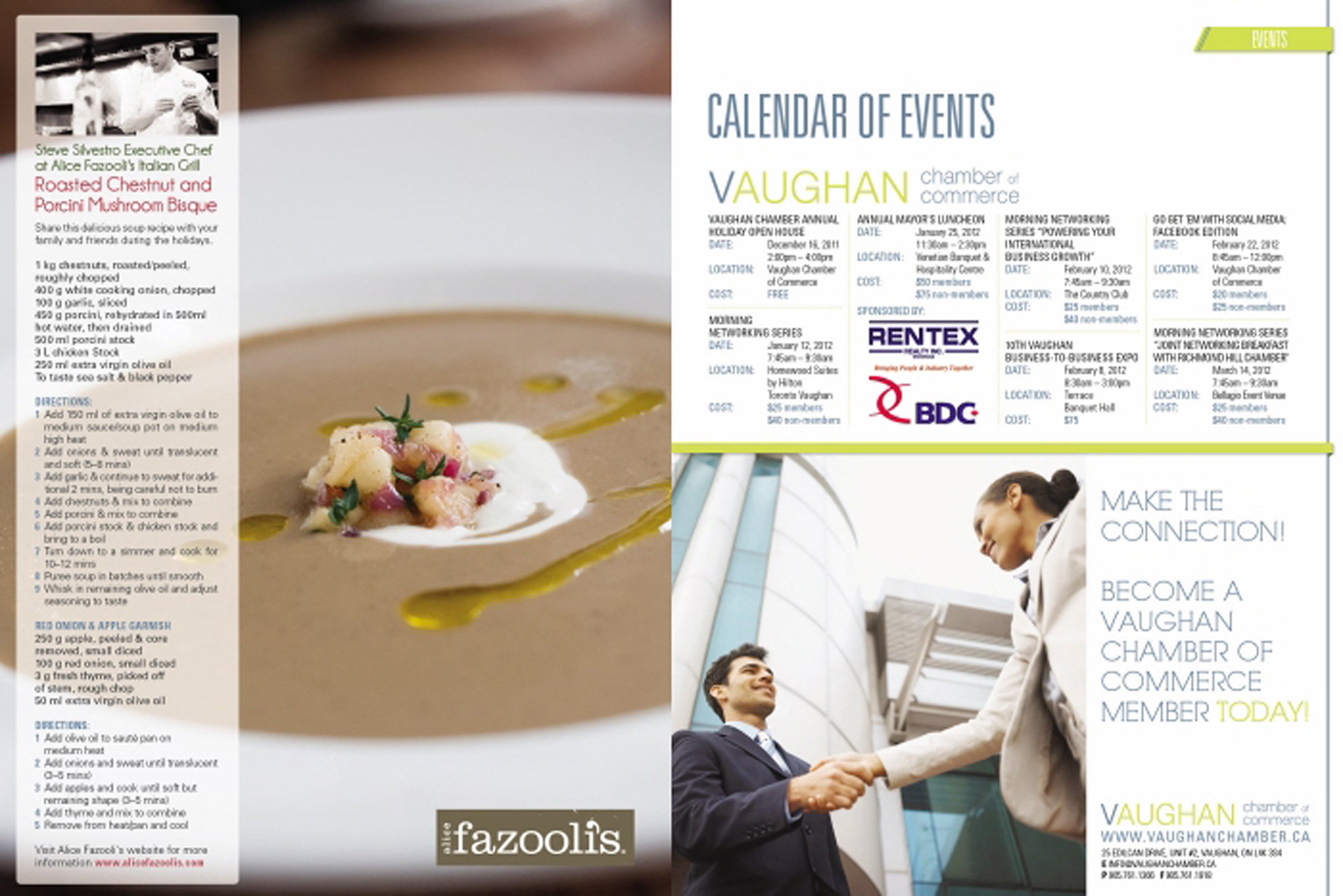 An electronic magazine geared towards small business owners of the Vaughan Chamber of Commerce. I was responsible for creative direction, working very closely with editor in chief and photographer