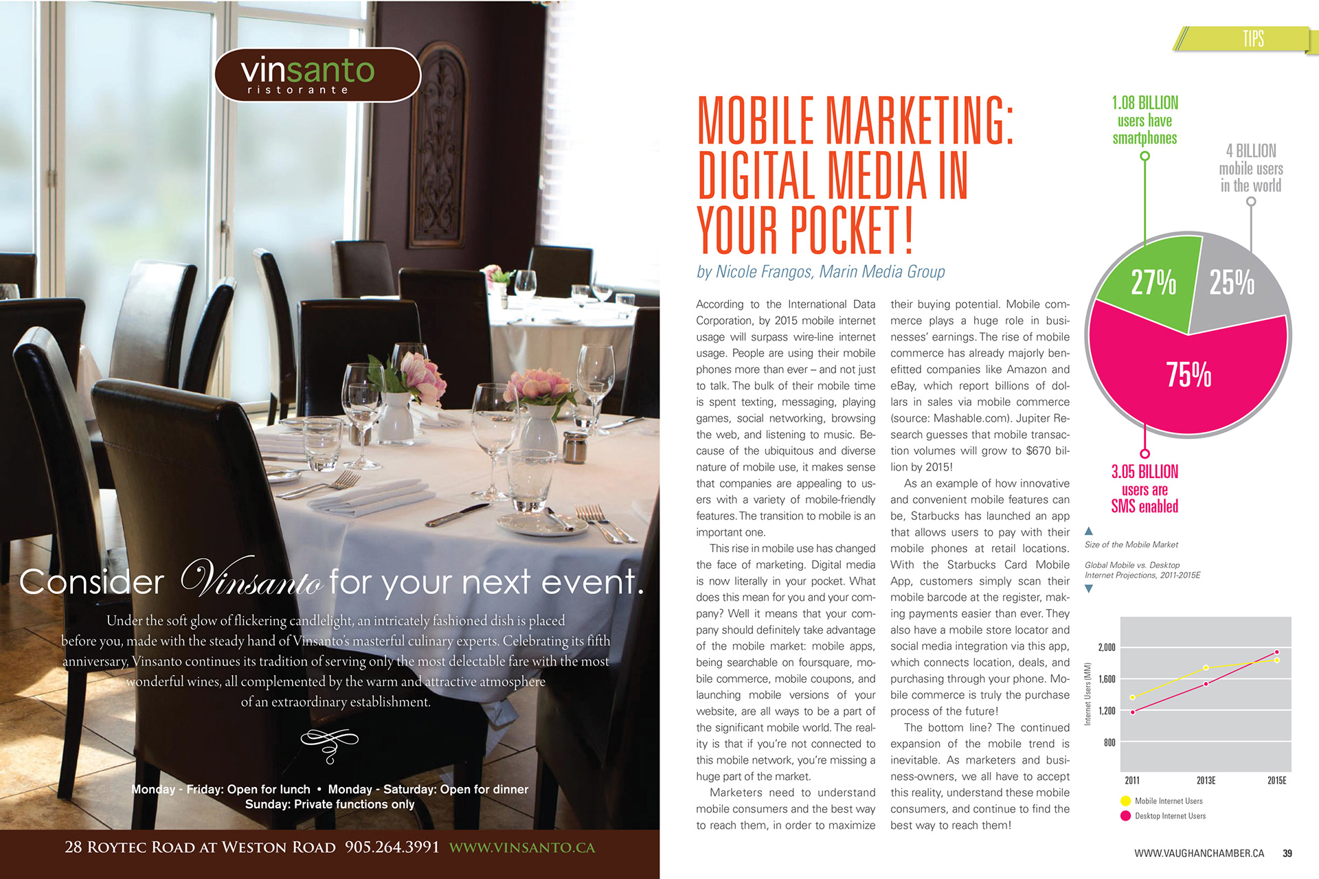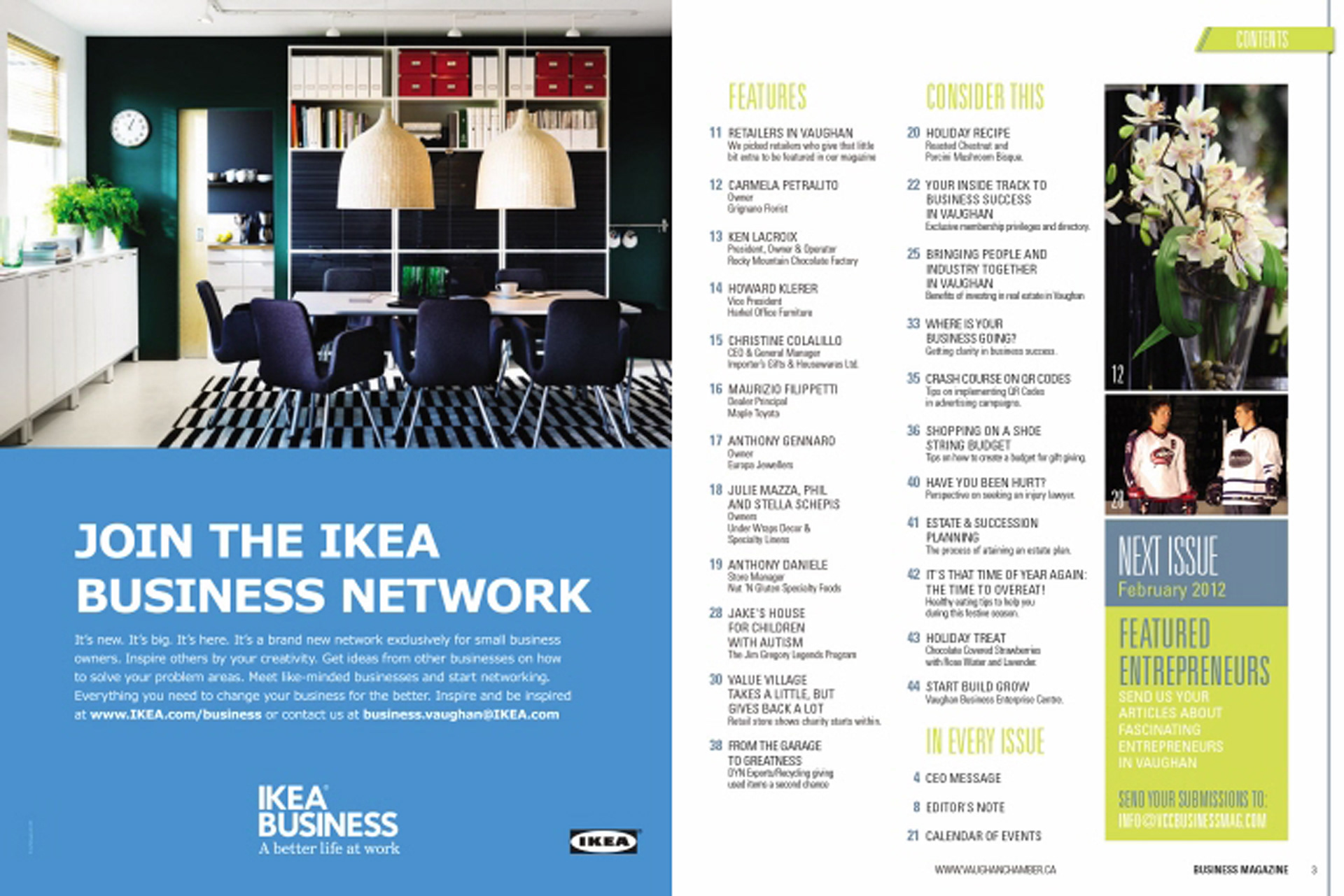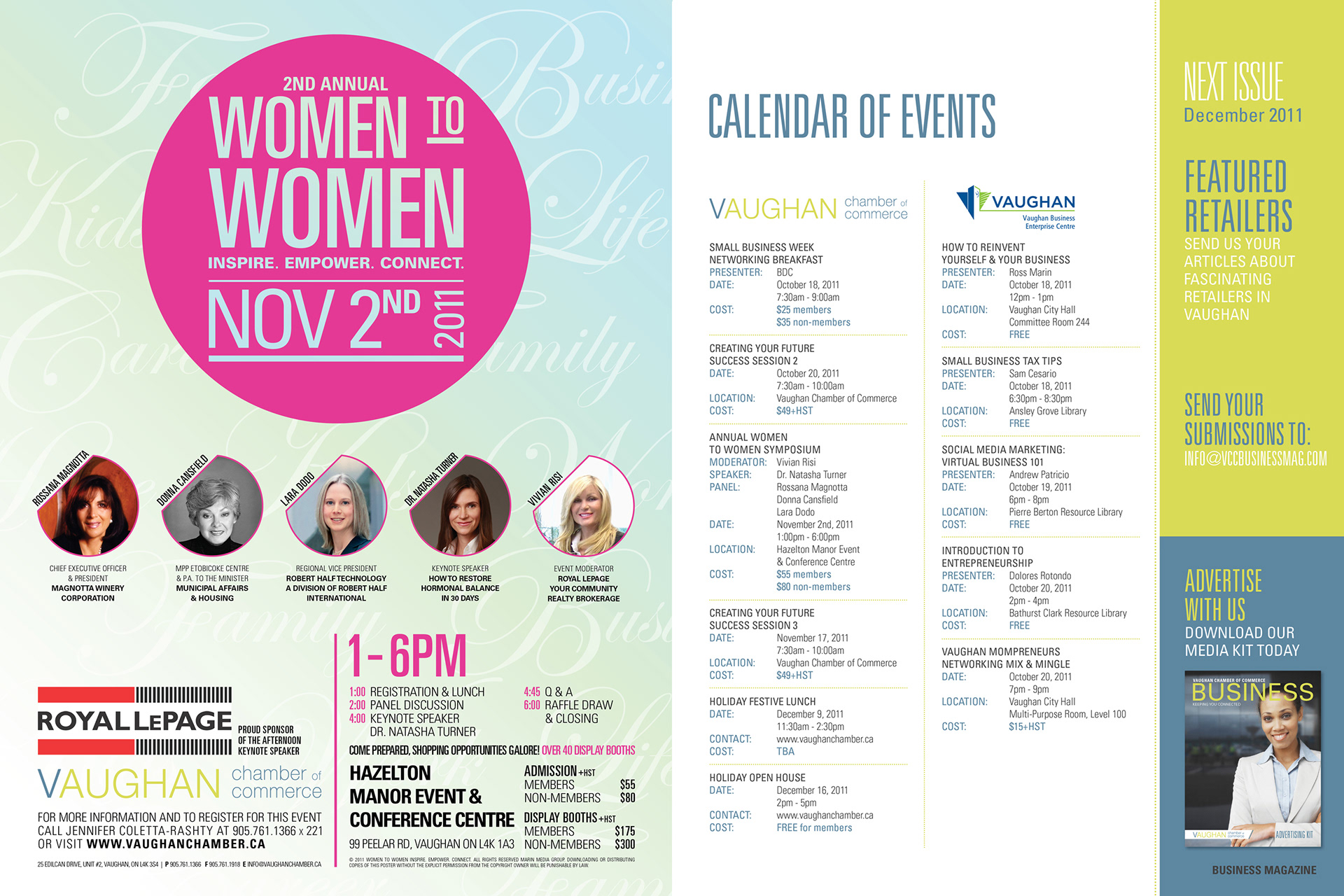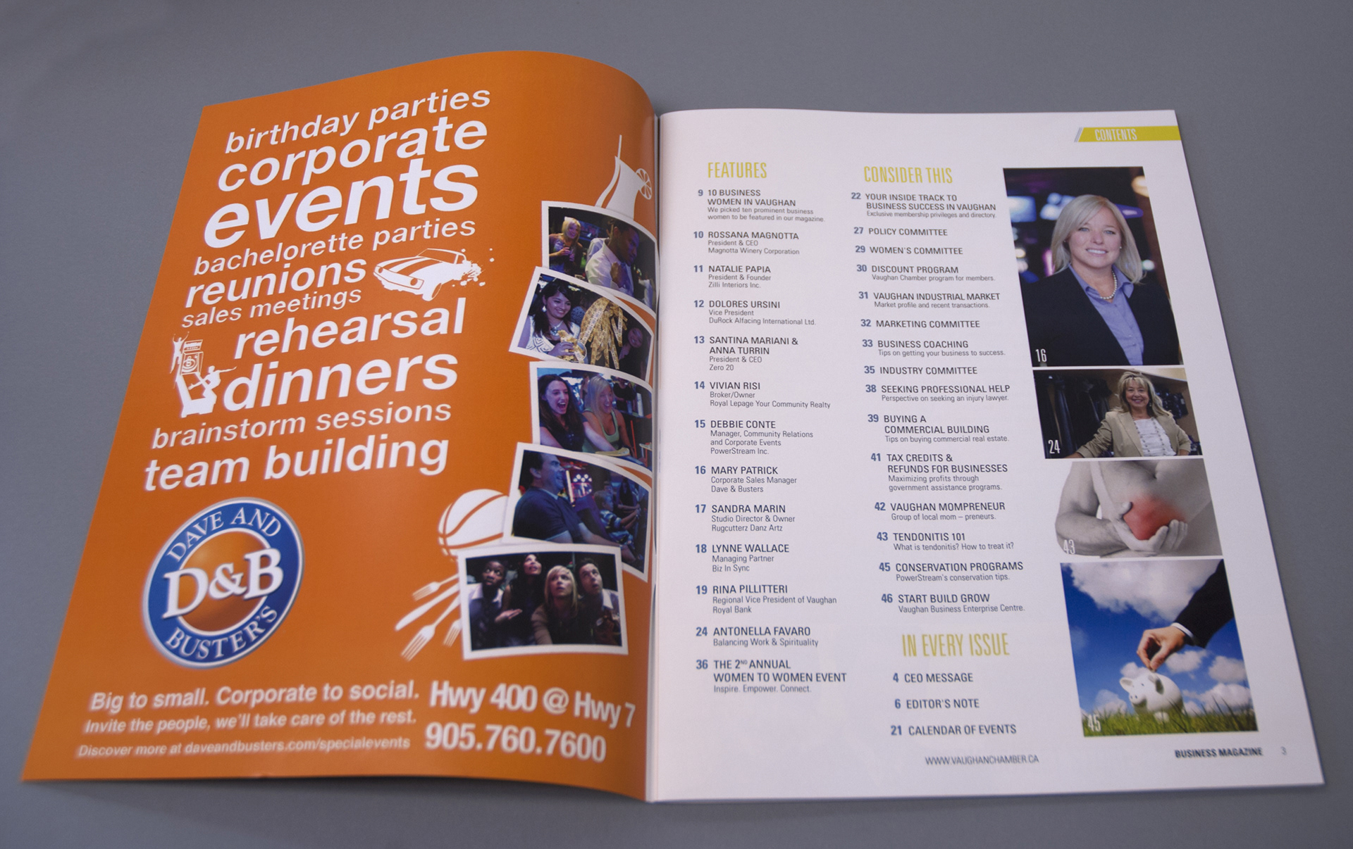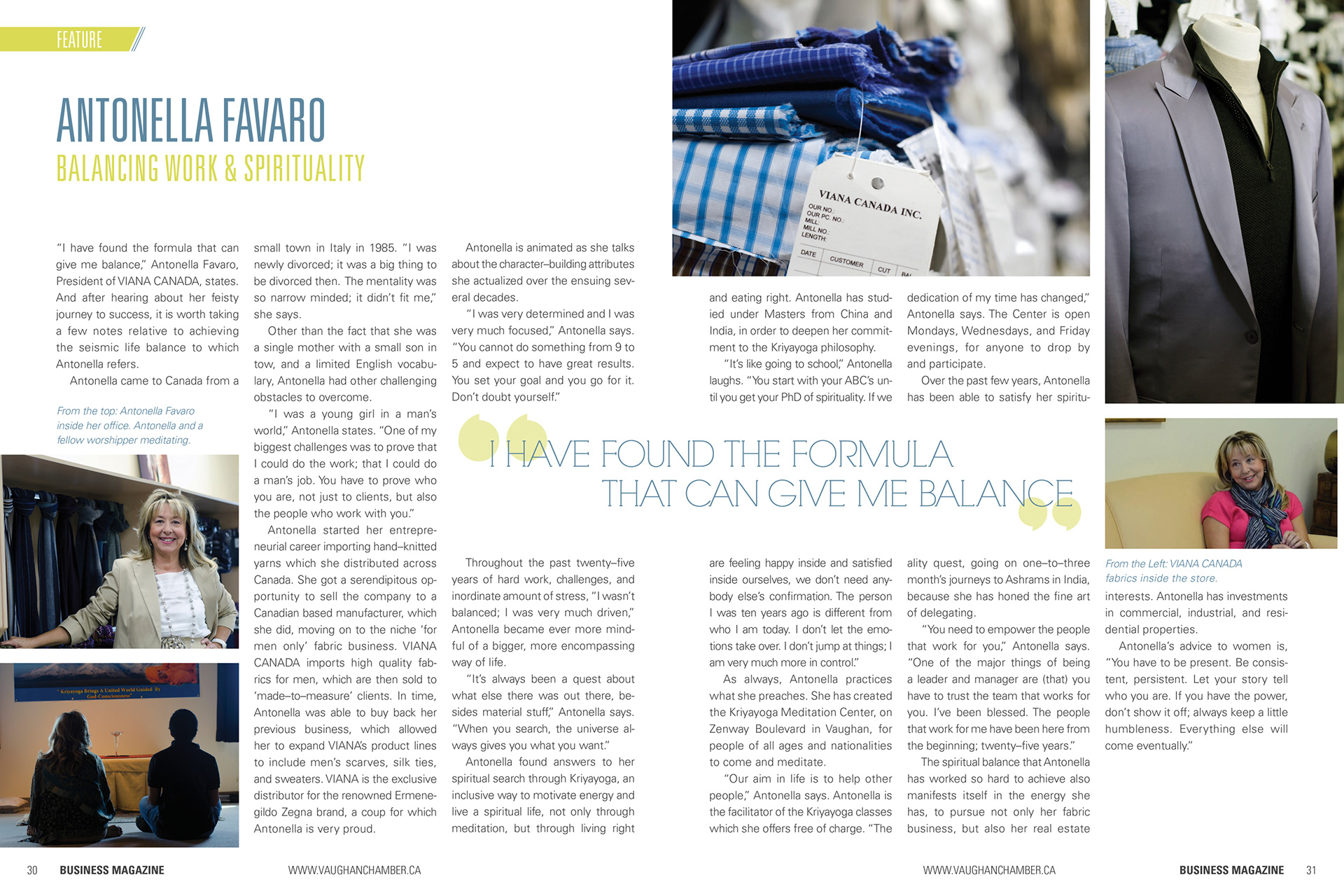 An electronic magazine geared towards small business owners of the Vaughan Chamber of Commerce. I was responsible for creative direction, working very closely with editor in chief and photographer